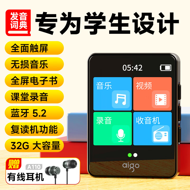 爱国者aigo MP3-306 MP3/MP4 1.77英寸无损HIFI音乐播放器 随身听小说学生高中专用 32G黑色价格:129.00元!