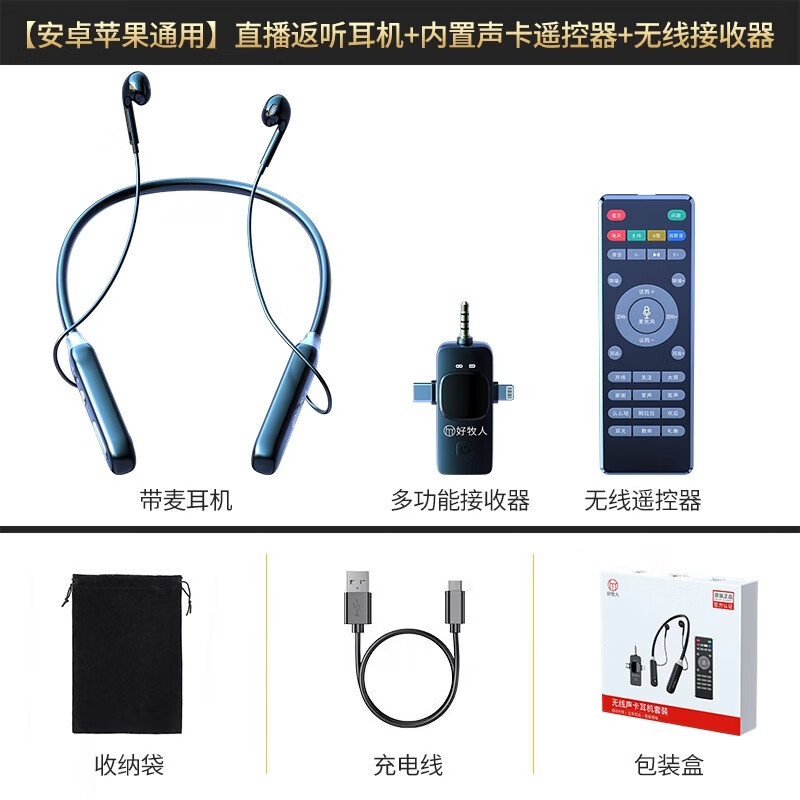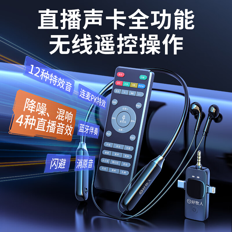 好牧人 无线监听直播耳机主播专用声卡麦克风K歌设备全套网红抖音带货户外唱歌手机蓝牙耳麦颈挂脖式耳返 B16Max无线声卡耳机【三合一通用】价格:228.00元!