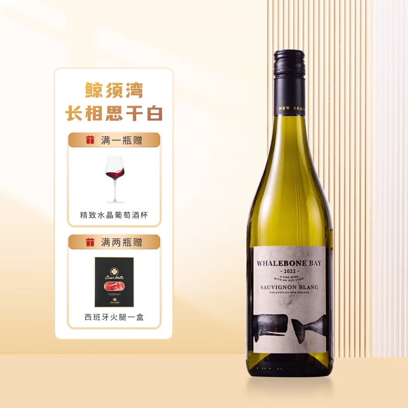 鲸须湾(WAHLEBONE BAY)云雾之湾平替 新西兰进口马尔堡长相思干白葡萄酒750mL价格:72.00元!