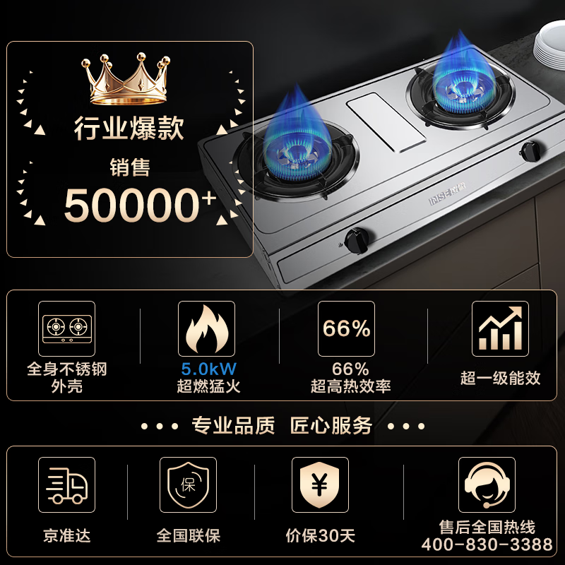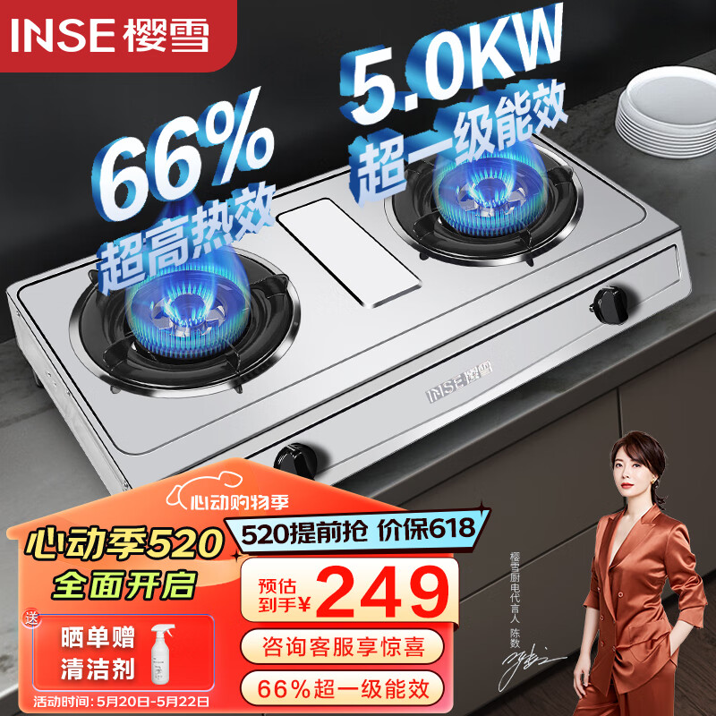 樱雪(INSE)燃气灶具 台式煤气灶双灶 不锈钢5.0KW猛火燃气灶 家用液化气双灶具 煤气炉灶台T2332液化气价格:238.70元!