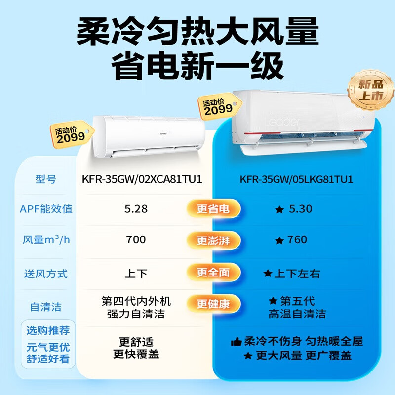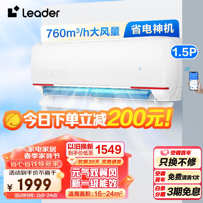 Leader海尔空调出品1.5匹挂机 新一级能效变频节能冷暖智能自清洁卧室壁挂式空调以旧换新LKG81[家电]价格:2199.00元!