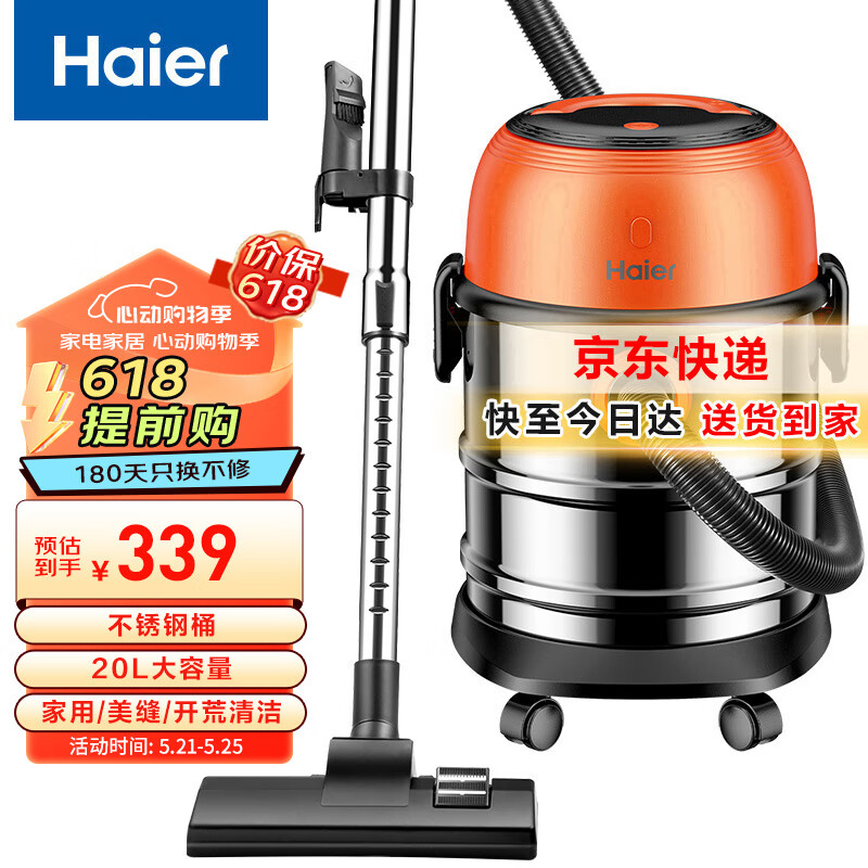 海尔(Haier)桶式吸尘器 20L大容量干湿吹三用大功率大吸力家用吸尘器HZ-T720价格:339.00元!