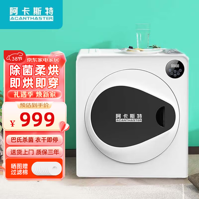 阿卡斯特衣服烘干机家用速干衣小型杀菌除螨消毒滚筒干衣机 503E 7KG触屏款不带紫外线价格:999.00元!