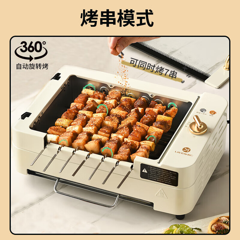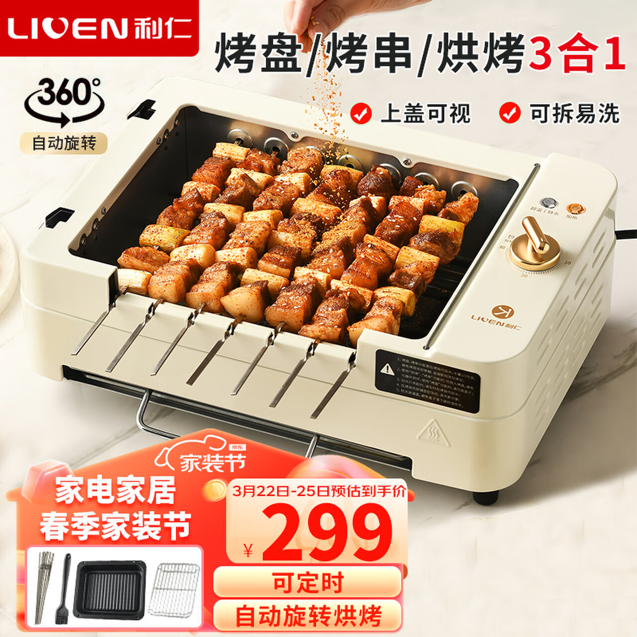 利仁(Liven)电烧烤炉家用电烤盘不粘电烤炉铁板烧烤串机烧烤炉烧烤架 全自动烤炉可定时KL-J7900价格:299.00元!