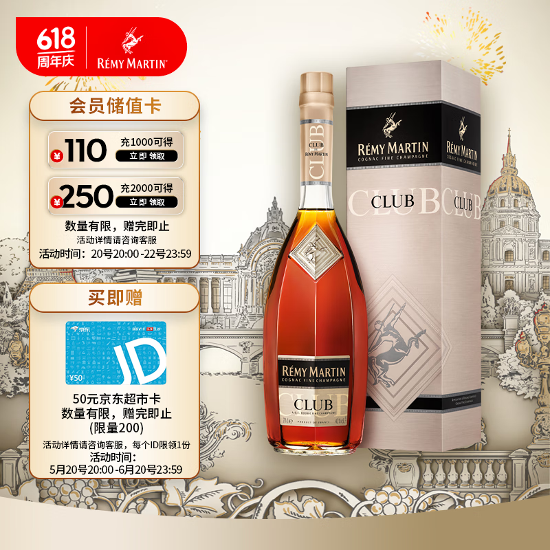 人头马(Remy Martin)洋酒 CLUB香槟区干邑白兰地 3000ml价格:3323.00元!