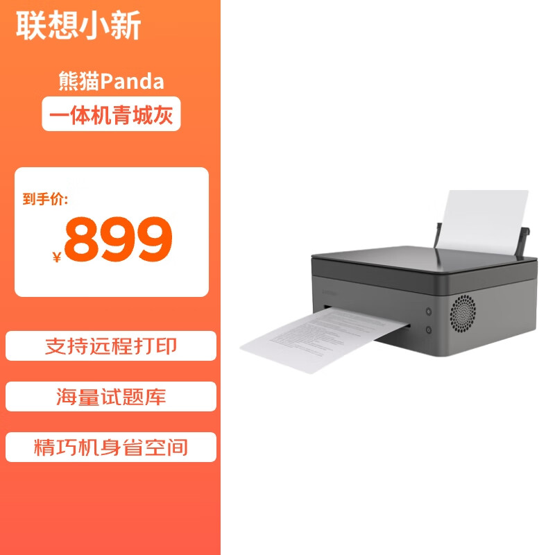 联想小新熊猫Panda打印机 学生家用办公商用 黑白激光高速打印/云打印/扫描/复印一体机 青城灰价格:899.00元!