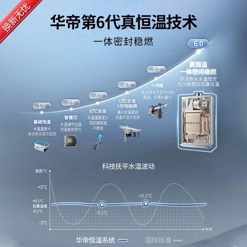 华帝(VATTI)16升燃气热水器天然气新升级水伺服一级恒温密闭稳燃舱i12164-16价格:2499.00元!