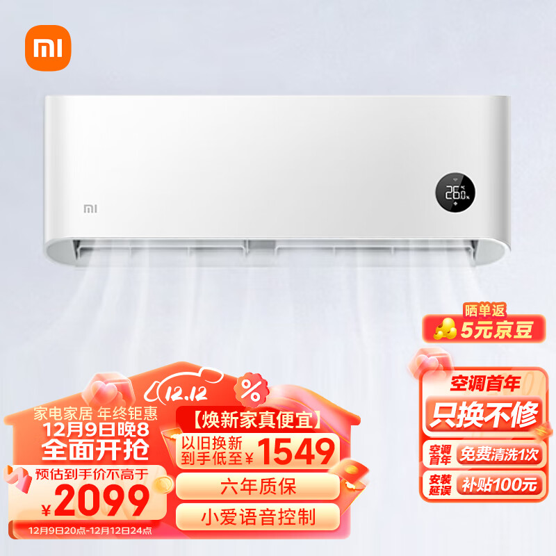 小米(MI)大1匹 新一级能效 变频冷暖 轻柔风感 智能自清洁 壁挂式卧室空调挂机 KFR-26GW/R1X1 以旧换新价格:2099.00元!