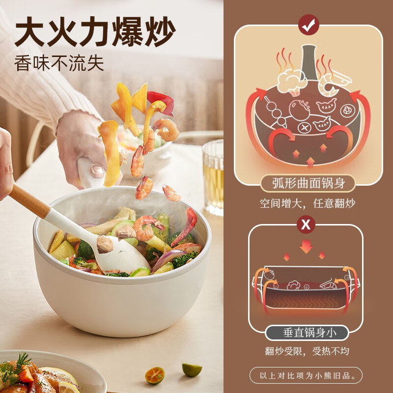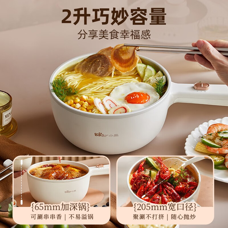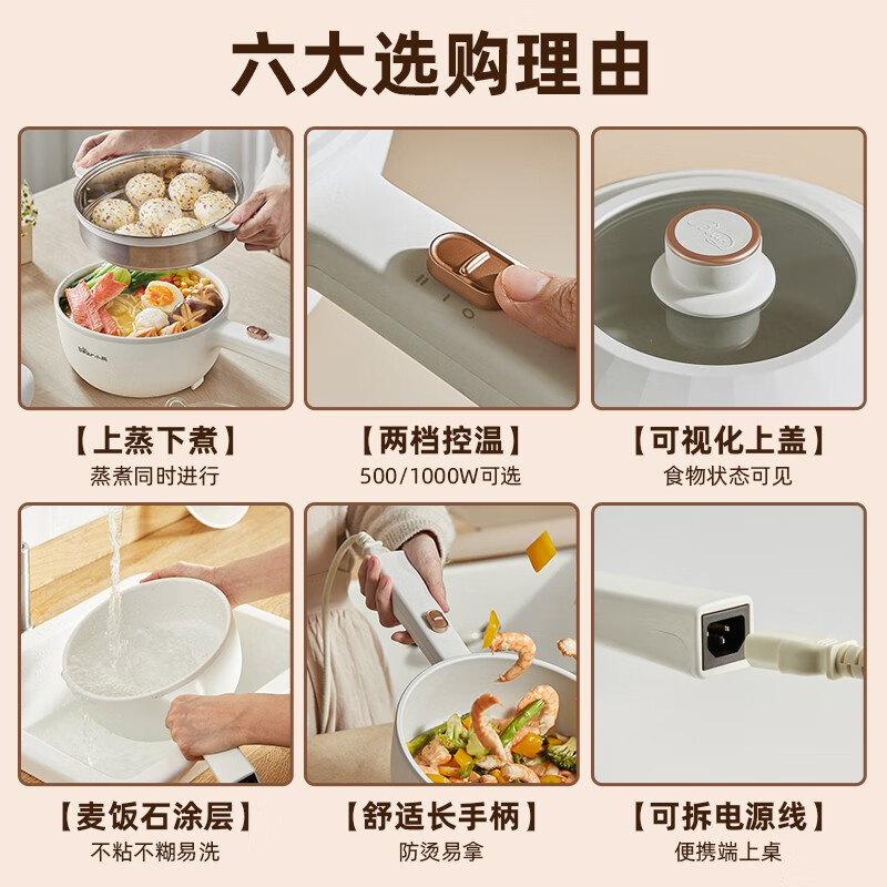小熊(Bear)电炒锅 电煮锅 电火锅小电锅宿舍小锅 2L不粘锅 电蒸锅 多功能锅电热锅料理锅 DRG-D20Y6丨不锈钢蒸笼价格:129.00元!