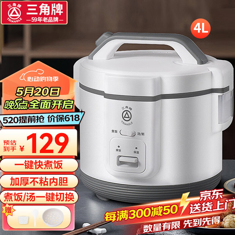 三角牌(Triangle)电饭煲迷你 家用智能大容量蒸米饭锅煮饭锅煲粥不粘西施煲白色 3-5人用 4L价格:149.00元!