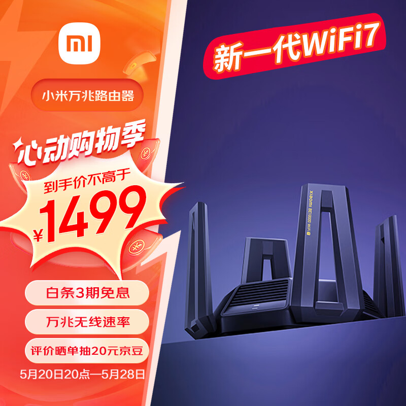 小米(MI)Xiaomi万兆路由器 WiFi7 万兆无线速率路由器 独立三频段 Mesh组网 性能旗舰路由价格:1310.00元!