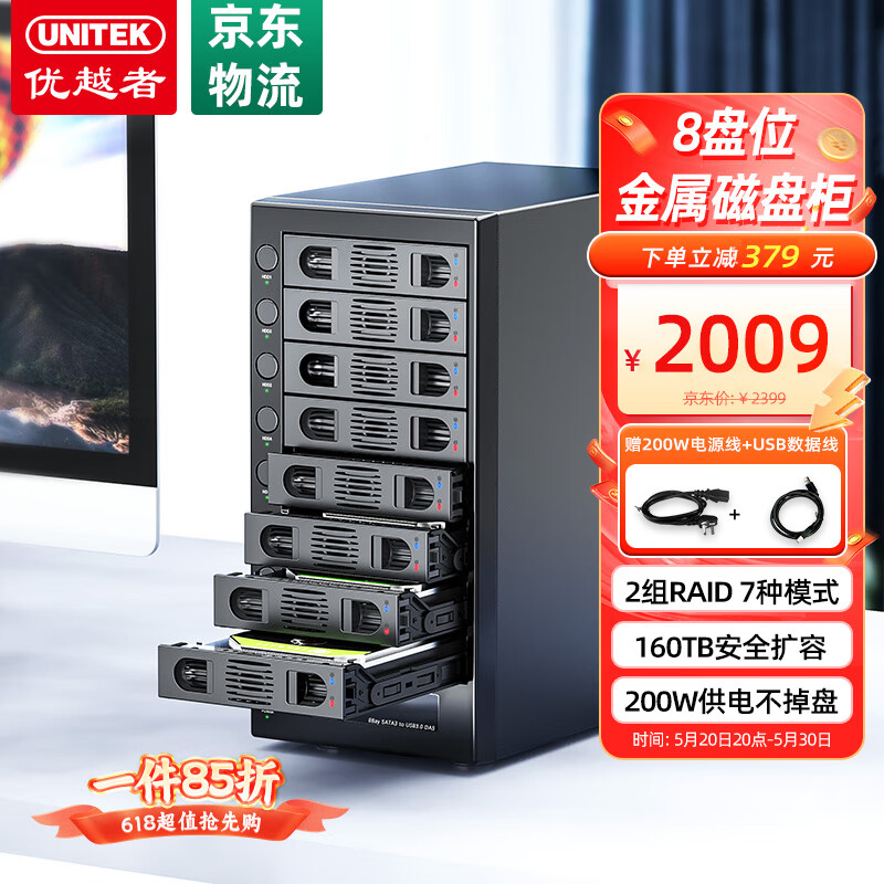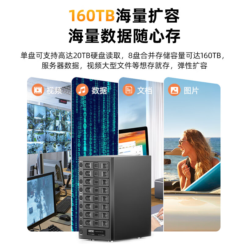 优越者硬盘柜RAID八盘位 2.5/3.5英寸USB3.0转SATA串口电脑外接机械SSD固态磁盘阵列存储架 Y-3373BBK价格:2364.00元!