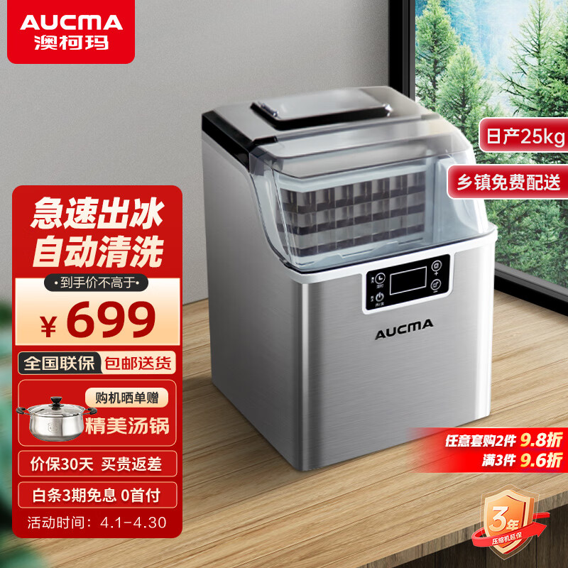 澳柯玛(AUCMA)制冰机小型迷你家用宿舍学生寝室全自动制作机 商用奶茶店酒吧KTV轰趴食堂冰块机 日产25公斤丨AZH-26NE价格:749.00元!