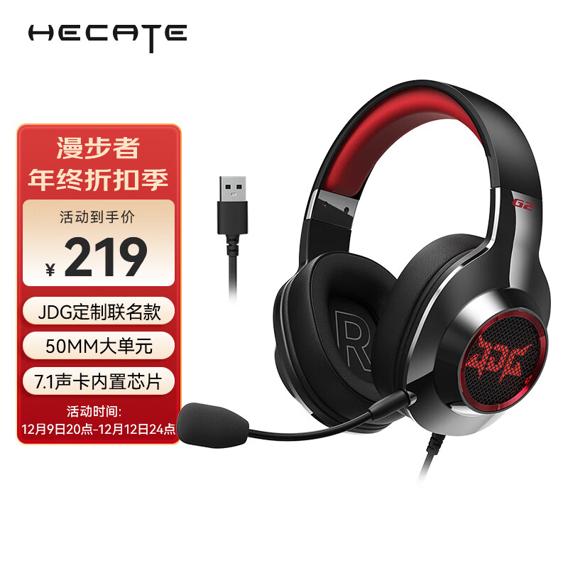 漫步者(EDIFIER)HECATE G2战队版JDG联名款USB7.1声道游戏耳机电竞耳麦头戴式电脑网课办公麦克风耳机带线控 钛黑价格:239.00元!