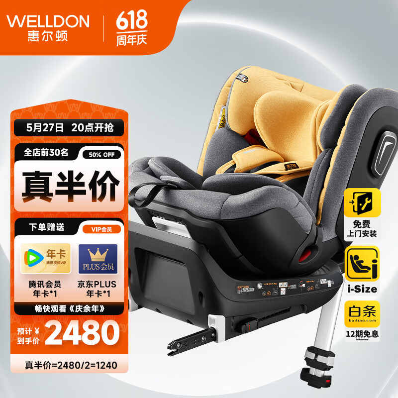 惠尔顿(Welldon)儿童座椅 0-7岁 360度旋转 i-Size认证 四大智能监测 智转PRO价格:2480.00元!