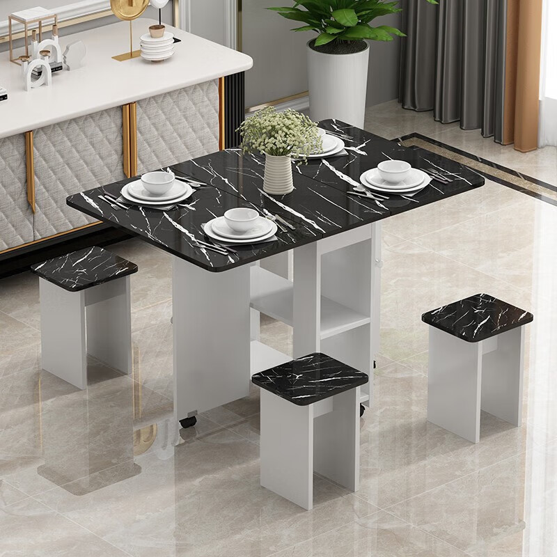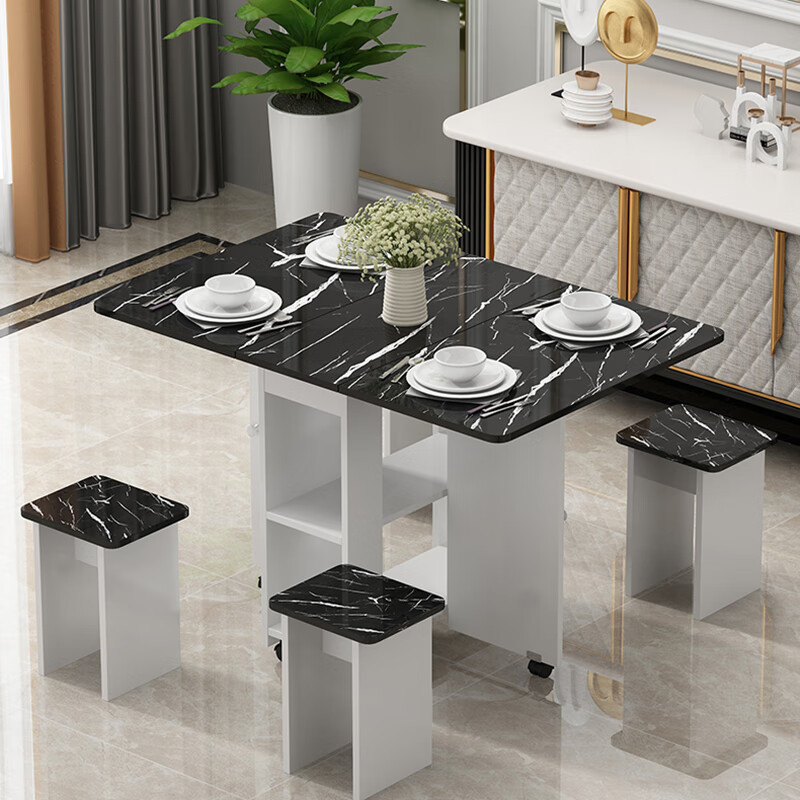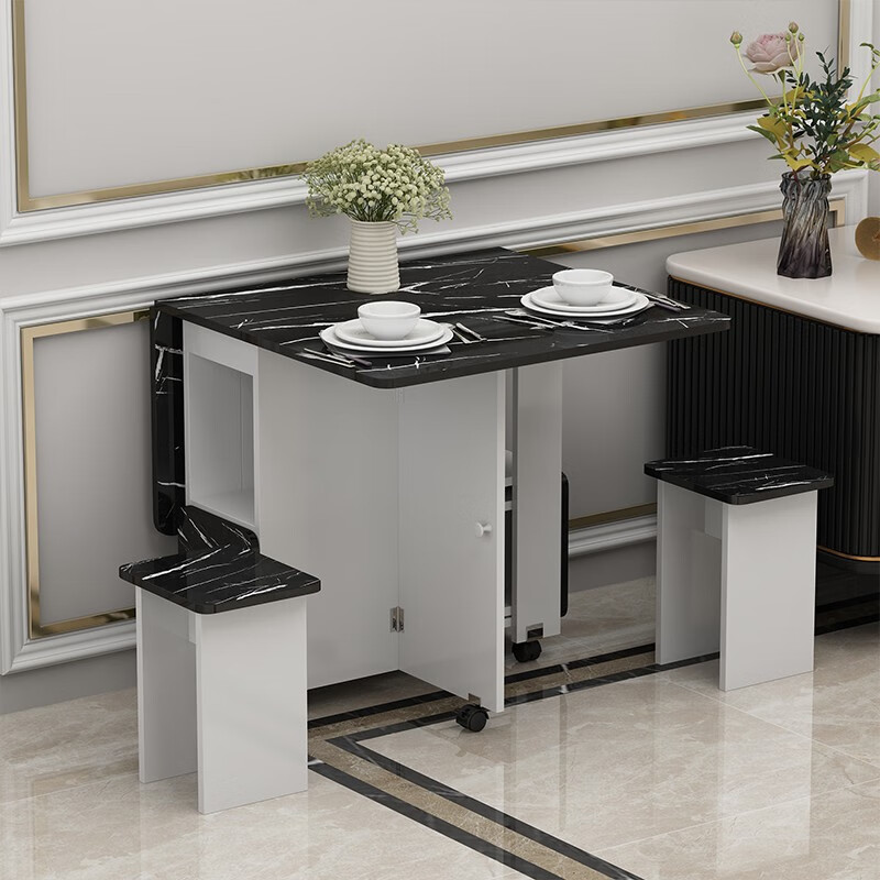 酷林KULIN折叠餐桌 家用黑色桌面带储物柜可移动 小户型餐桌椅可伸缩饭桌价格:269.00元!