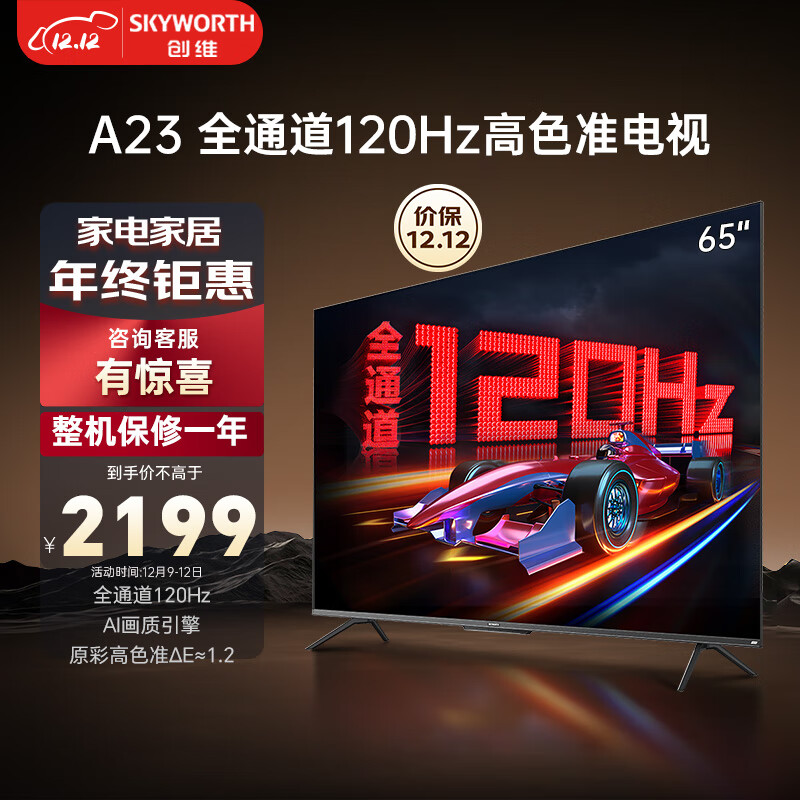 创维电视65A23 65英寸电视机排行前十名全通道120Hz 2+32G4K超高清护眼声控屏智能液晶价格:2199.00元!