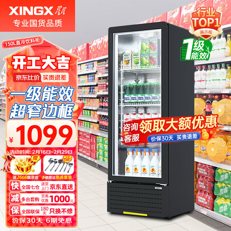星星(XINGX)展示柜冷藏饮料柜一级能效单门立式冰柜商用保鲜冰箱风冷直冷超市便利店陈列柜啤酒水果柜 直冷省电 1级能效150升 LSC-150YPE价格:1099.00元!