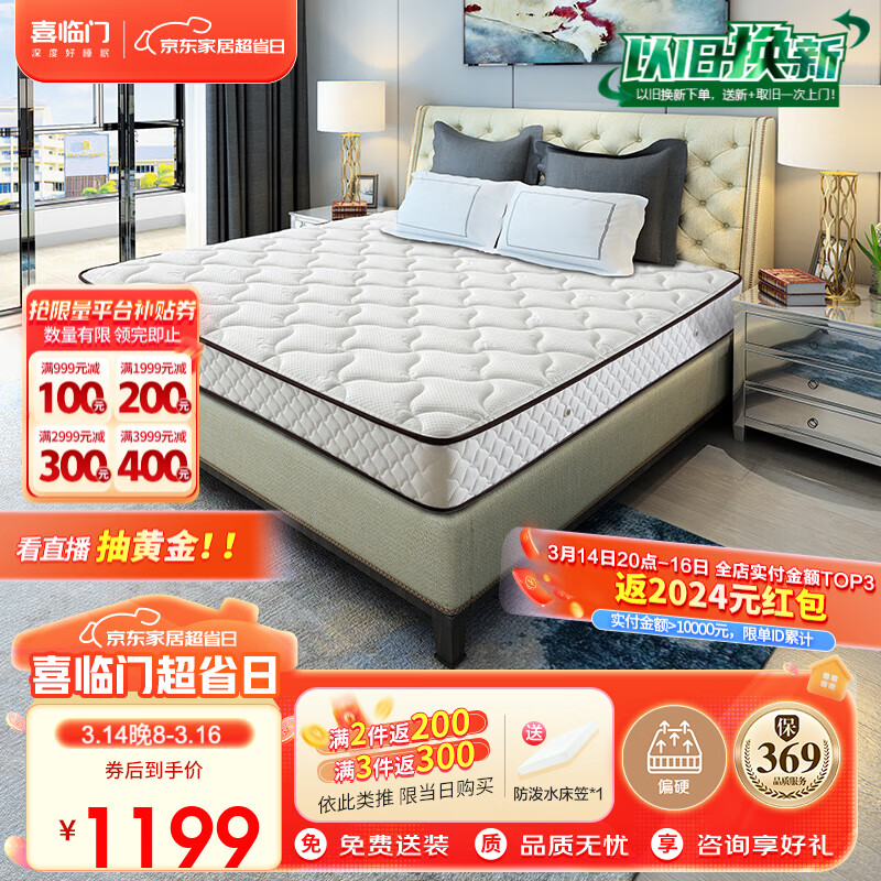 喜临门 3D椰棕床垫 邦尼尔弹簧床垫 抑菌防螨床垫 极光白2S 1.2x2米价格:1299.00元!