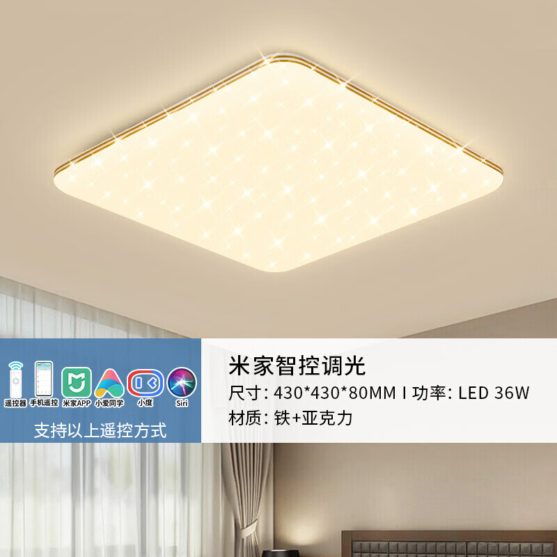 雷士(NVC)LED传统吸顶灯AI语音控制卧室灯具现代简约餐厅灯书房灯饰方灯价格:492.00元!