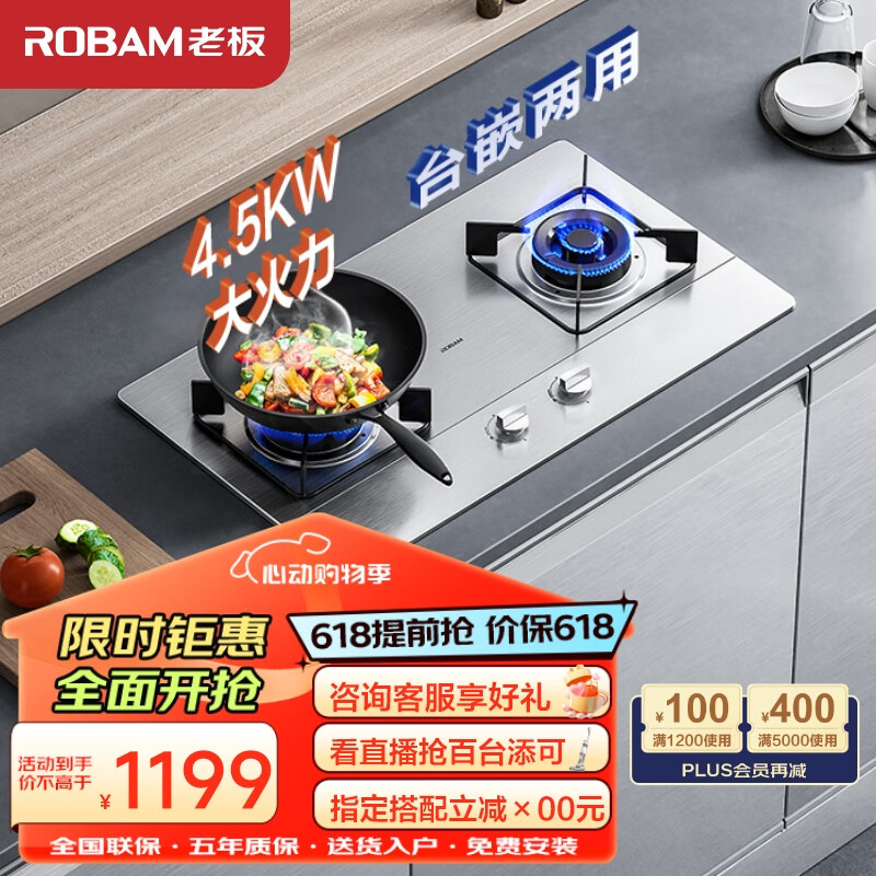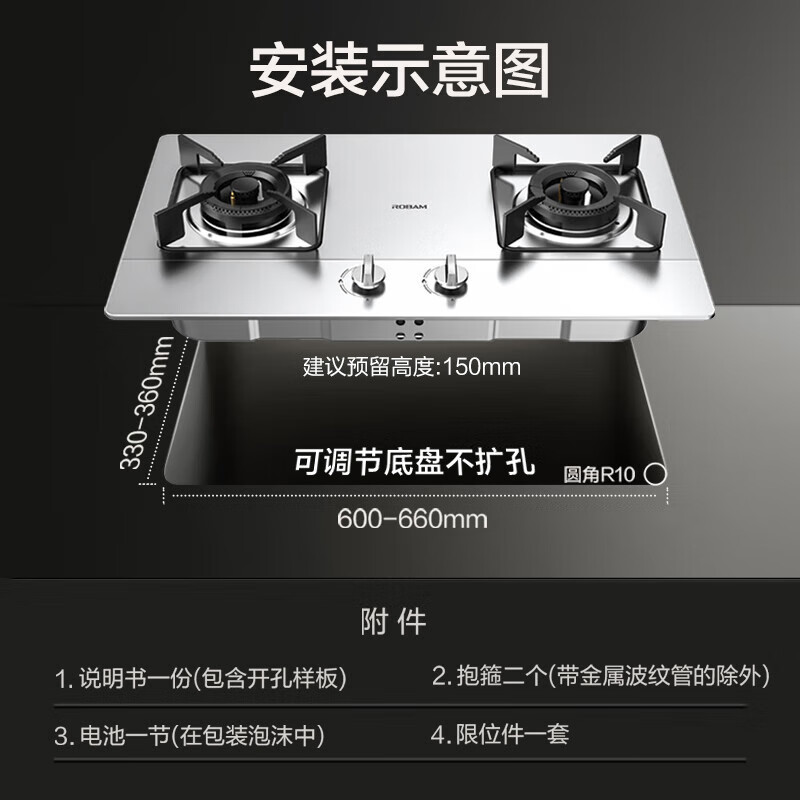 老板(Robam)JZT-32G91A燃气灶嵌入式灶具 家用双灶台嵌两用4.5kW大火力小尺寸可调节耐用不锈钢天然气价格:1299.00元!