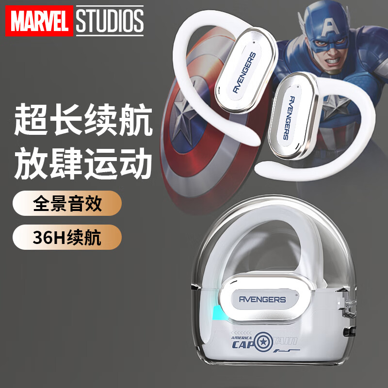 迪士尼漫威蓝牙耳机挂耳式骨传导概念OWS开放式不入耳运动跑步立体音效适用于华为苹果 MV-YC08冰甲美队价格:119.00元!