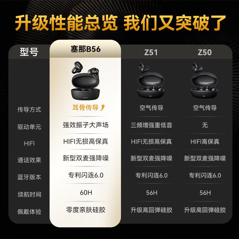 SANAG塞那 B56骨传导蓝牙耳机开放式真无线不入耳运动跑步通话降噪高音质夹耳式耳机长续航高端礼物价格:499.00元!