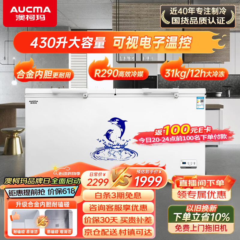 澳柯玛(AUCMA) 430升家用冰柜 商用大容量超低温冷柜 单温冷藏冷冻转换柜 顶开门冰柜电脑控温 BC/BD-430HDNE价格:2399.00元!