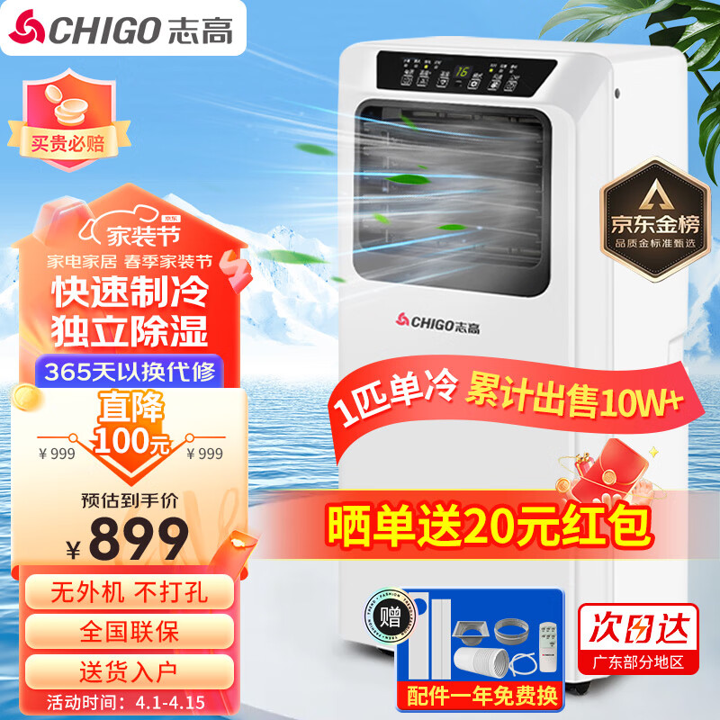 志高(CHIGO)移动空调 1匹单冷家用空调一体机免安装无外机免排水厨房客厅小空调 KY-7KB价格:899.00元!