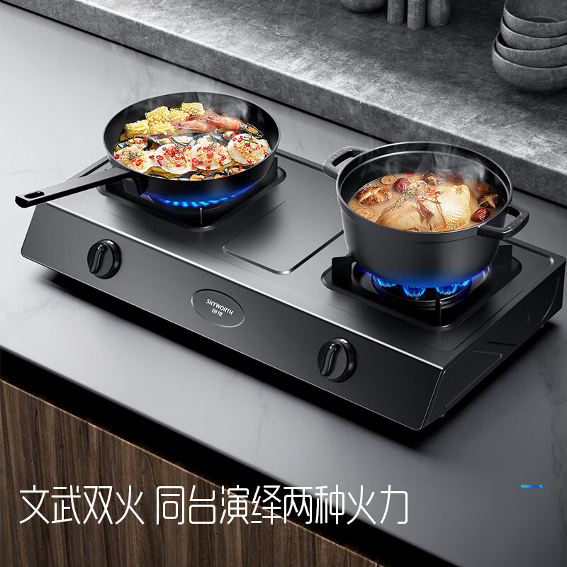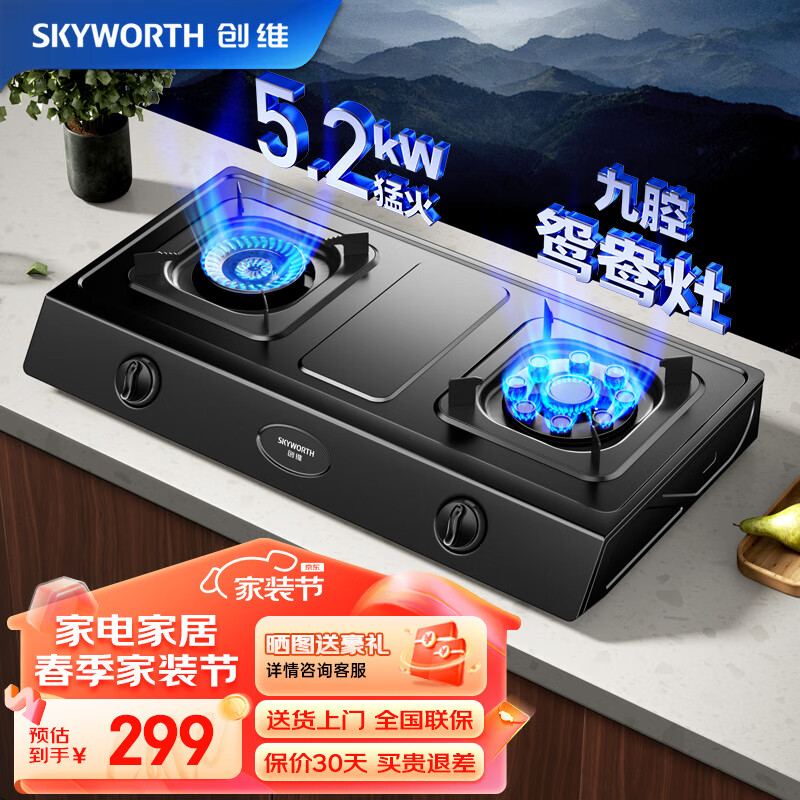 创维(Skyworth)燃气灶天然气双灶家用双眼天然气双炉灶台5.2kW九腔鸳鸯猛火炉具Z202T(天然气)价格:299.00元!