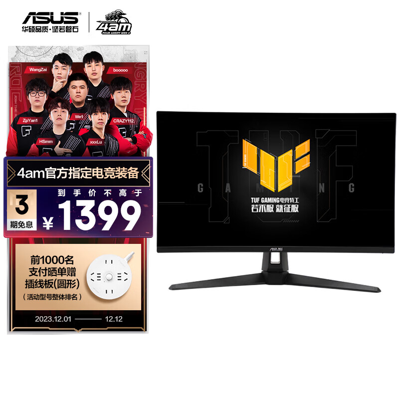华硕TUF VG27AQ3A 27英寸游戏2K显示器Fast IPS超频180Hz G-sync兼容 1msGTG响应HDR10音响小金刚PLUS2023价格:1449.00元!