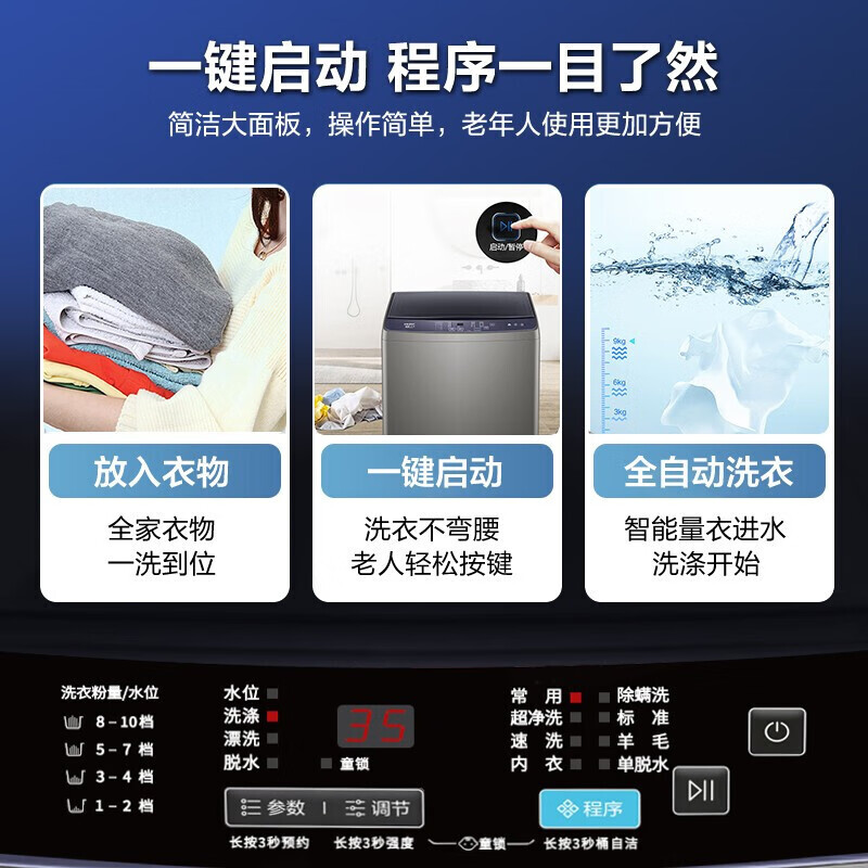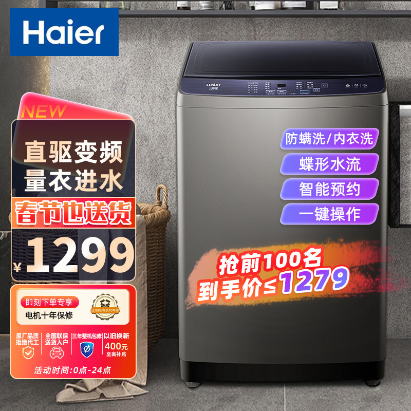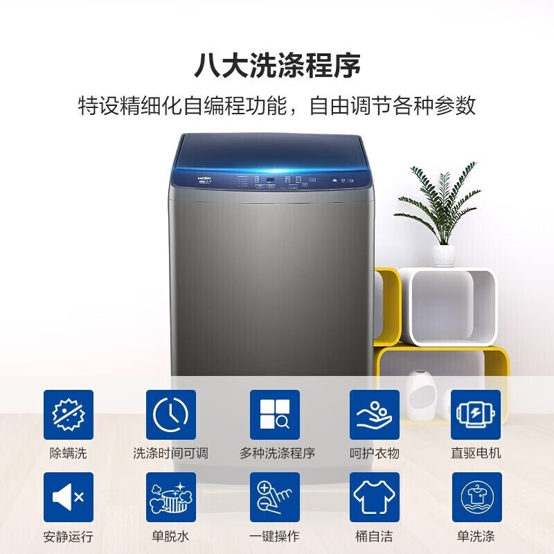 海尔(Haier)全自动波轮洗衣机10公斤直驱变频一级能效低磨损洗脱一体一键操作家用大容量自编程XQB100-BZ206价格:1299.00元!