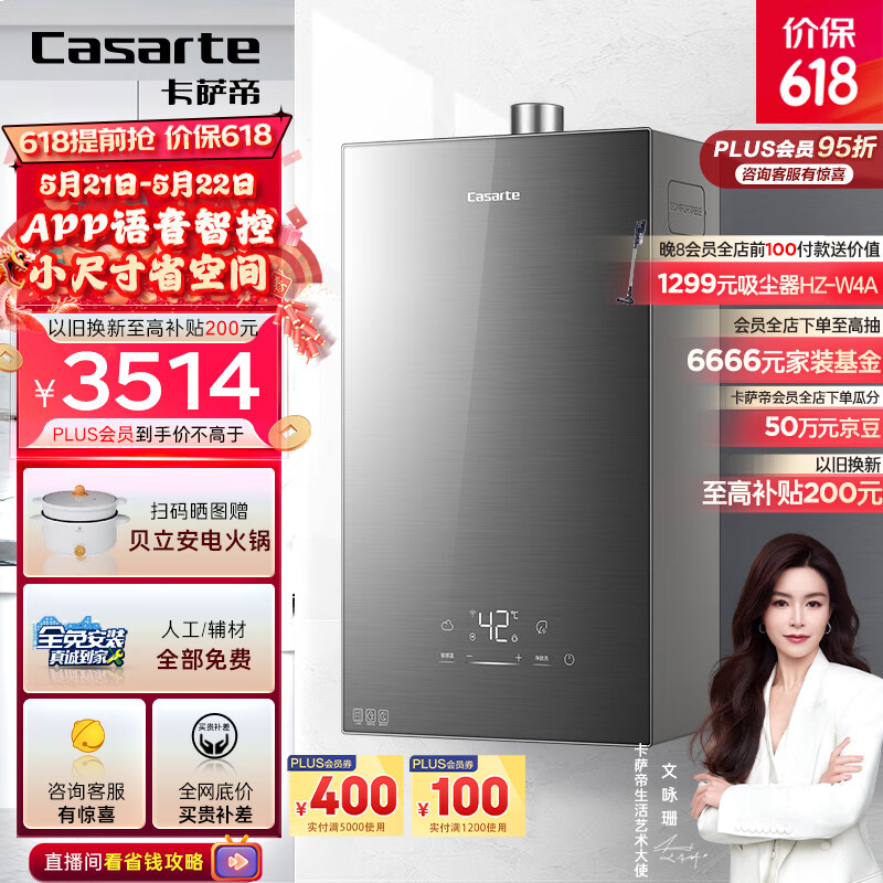 卡萨帝(Casarte)13升家用燃气热水器天然气母婴级恒温水伺服静音强排式下置风机小尺寸JSQ25-13CW3(12T)U1价格:3699.00元!