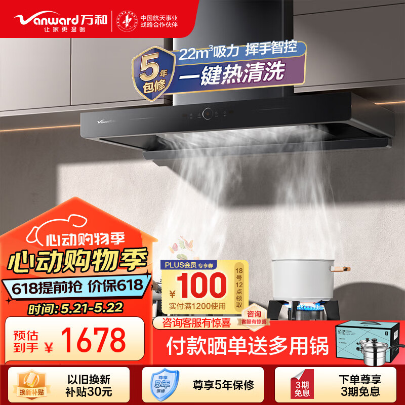 万和(Vanward)欧式油烟机顶吸式 家用自清洗 22m3/min大吸力烟灶套餐抽油烟机燃气灶具 X739A+B7L51(液化气)价格:1778.00元!