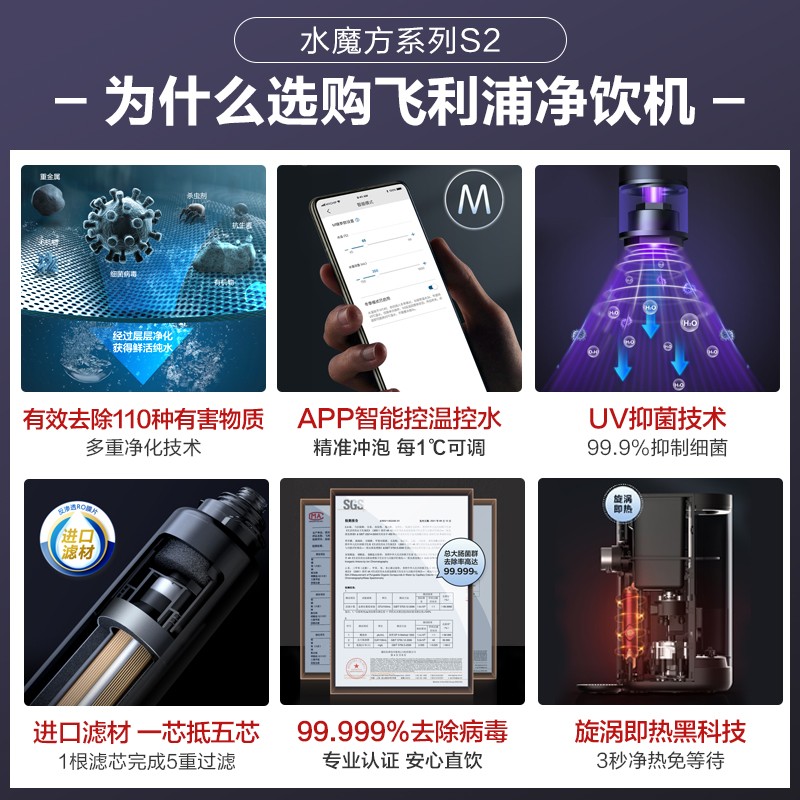 飞利浦(PHILIPS)加热净水器 水魔方S2家用即热式饮水机 台式免安装反渗透直饮水机净饮一体机ADD6808价格:1699.00元!