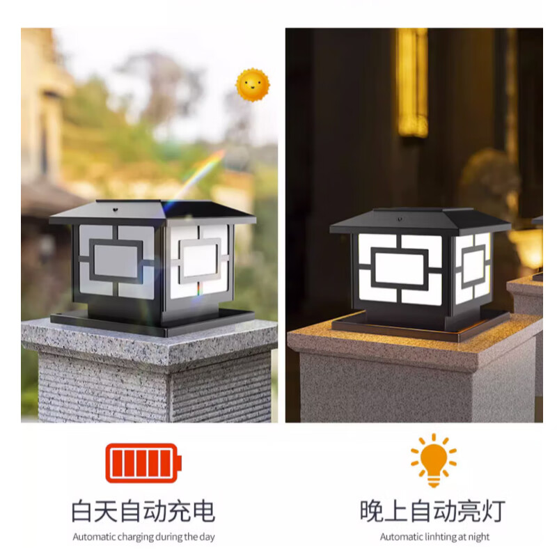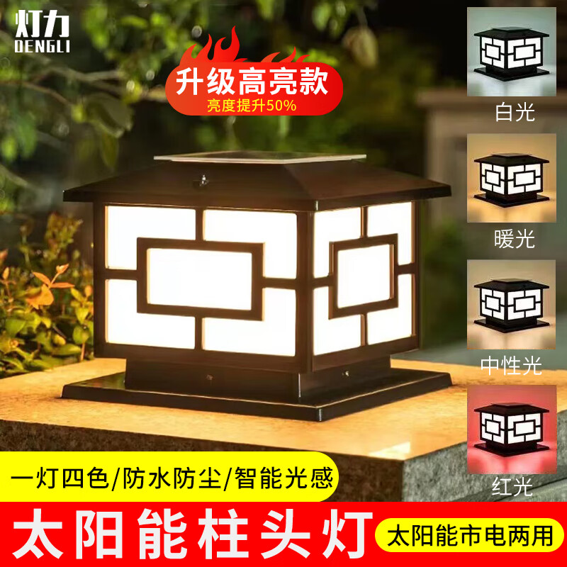 灯力太阳能市电柱头灯户外防水围墙门柱灯庭院家用别墅花园公园室外灯 30cm黑色中字-适用40-50cm门柱价格:139.00元!