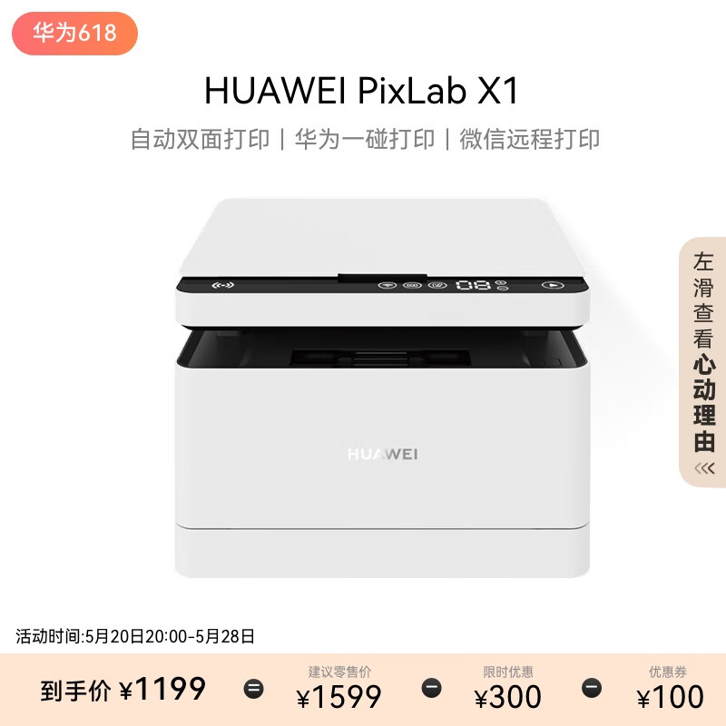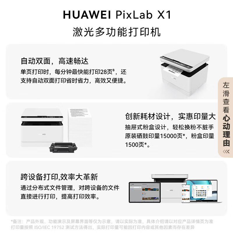 华为黑白激光多功能打印一体机 办公商用学生家用/打印复印扫描三合一/自动双面/无线打印 PixLab X1价格:1199.00元!