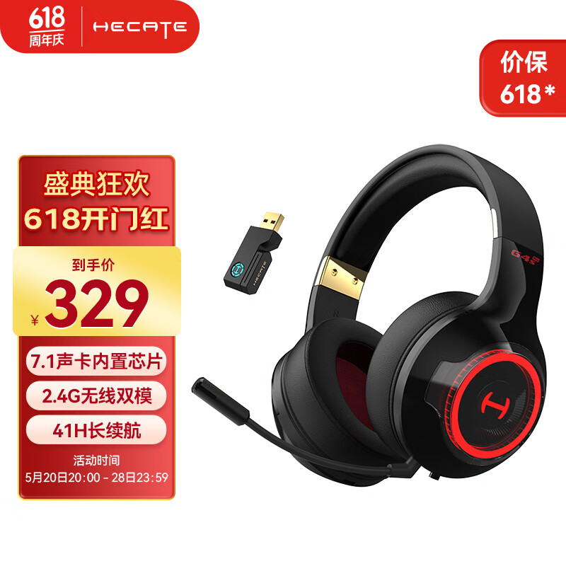 漫步者(EDIFIER)HECATE G4Spro 2.4G蓝牙无线7.1游戏耳机头戴式 双模电脑电竞吃鸡耳机耳麦 黑色价格:329.00元!