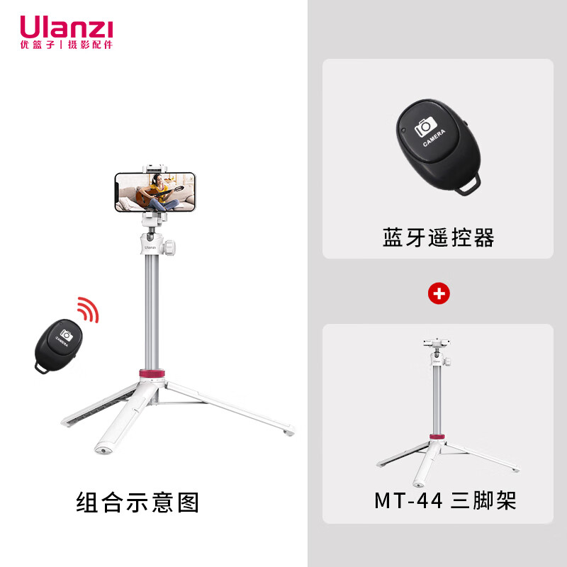 ulanzi优篮子MT-44延长三脚架蓝牙套装(白)户外迷你便携手机微单云台vlog直播摄影拍照自带手机夹价格:90.00元!