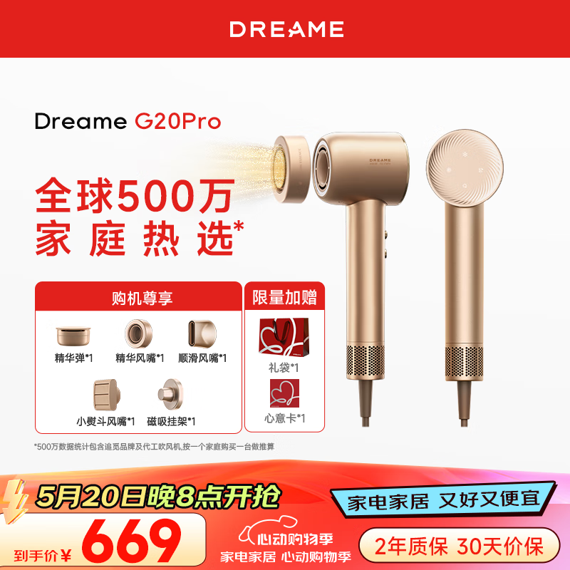 追觅韶光G20Pro高速吹风机家用 大功率负离子吹风筒 精华弹护发润发电吹风节日礼物 香槟金价格:778.00元!
