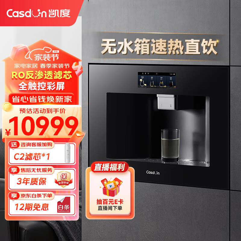 凯度(CASDON)嵌入式净饮机 直饮水机 嵌入式净水器 嵌入式直饮机 饮水机家用 高清彩屏触控 RO反渗透净水器 Z9价格:10999.00元!