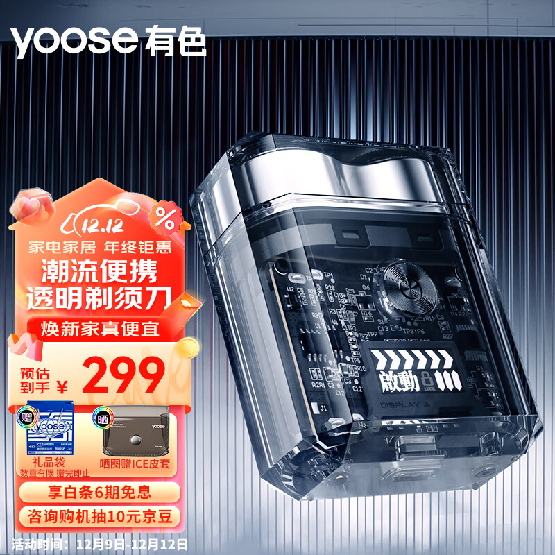 有色(yoose)男士电动剃须刀 潮流冰感便携 全身防水 送男友节日礼物 胡须刀礼盒 ICE 透明灰价格:314.00元!