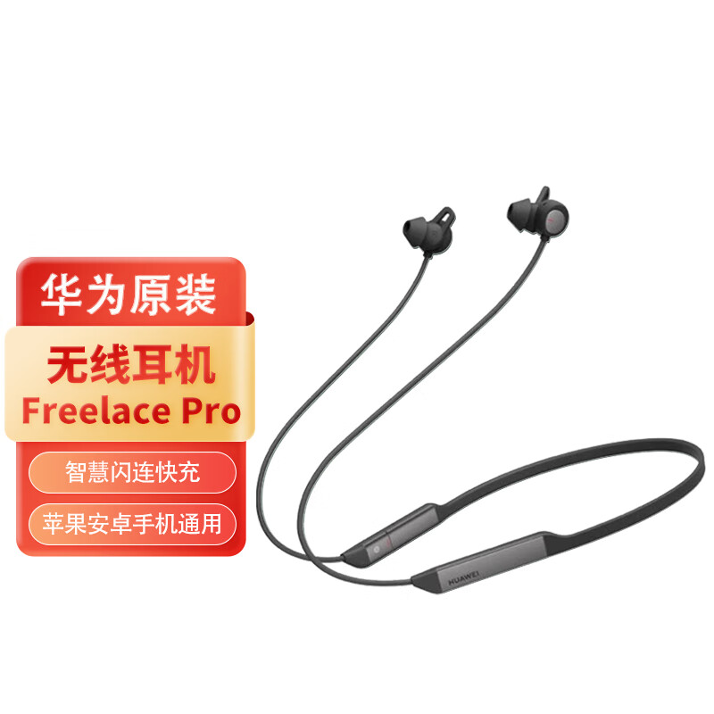 华为(HUAWEI)蓝牙耳机 Freelace Pro 黑色 适用于华为mate60 主动降噪无线挂脖式入耳 苹果安卓手机通用价格:359.00元!