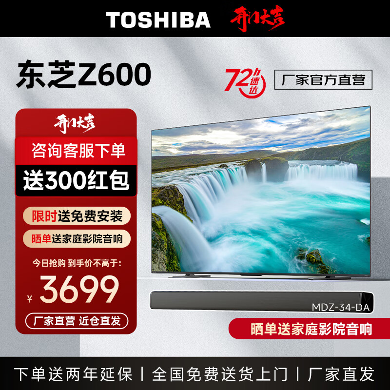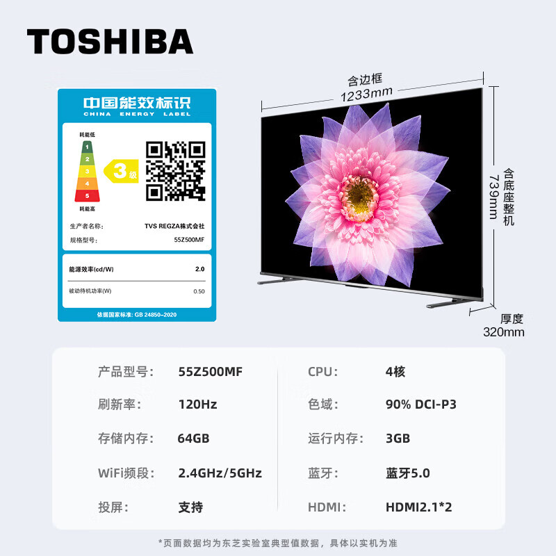 东芝(TOSHIBA)电视55Z500MF 55英寸量子点120Hz高刷 高色域 4K超清屏液晶智能平板电视机3+64GB 以旧换新价格:2498.00元!