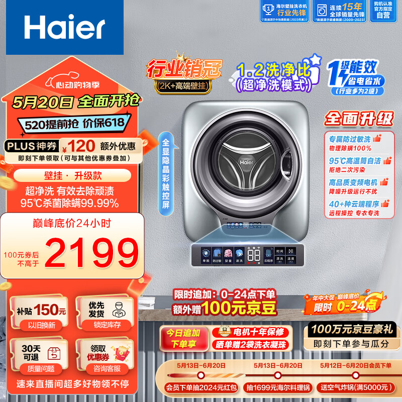 海尔(Haier)壁挂洗衣机 洗衣机小型全自动 内衣裤洗衣机 婴儿挂壁式 3KG超净洗除菌螨 以旧换新 XQGM30-B759U1价格:2299.00元!
