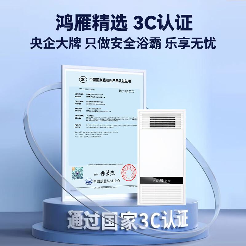 鸿雁浴霸风暖浴霸排气扇照明一体集成吊顶浴室超薄数显款QF12305D价格:398.00元!
