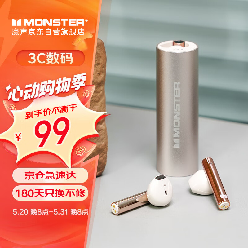 魔声(MONSTER)GT11 MK2真无线蓝牙耳机 蓝牙5.3 智能降噪跑步运动游戏音乐耳机 适用苹果华为小米手机价格:159.00元!