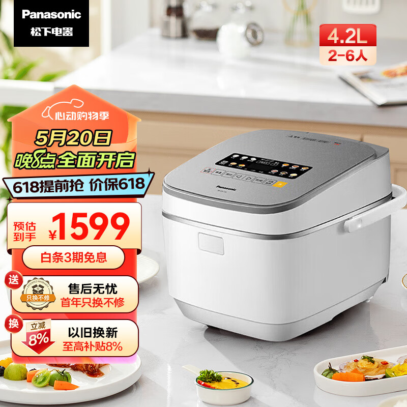 松下(Panasonic)电饭煲电饭锅4.2L IH电磁加热 备长炭铜釜 一键式可拆洗 不锈钢内盖 SR-HTL155价格:1599.00元!