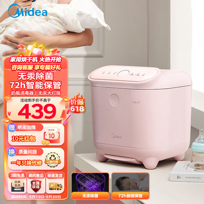 美的(Midea)烘干机家用干衣机小型内衣内裤消毒杀菌机母婴儿童奶瓶消毒器衣物即烘即穿除湿LED衣物护理机10B01价格:439.00元!