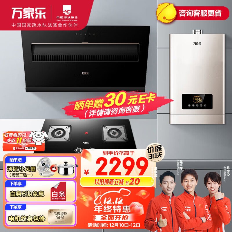 万家乐抽油烟机 厨卫烟灶热三件套装18m3油烟机套装 油烟机燃气灶热水器套装AL041+AY4+16D5天然气价格:2499.00元!